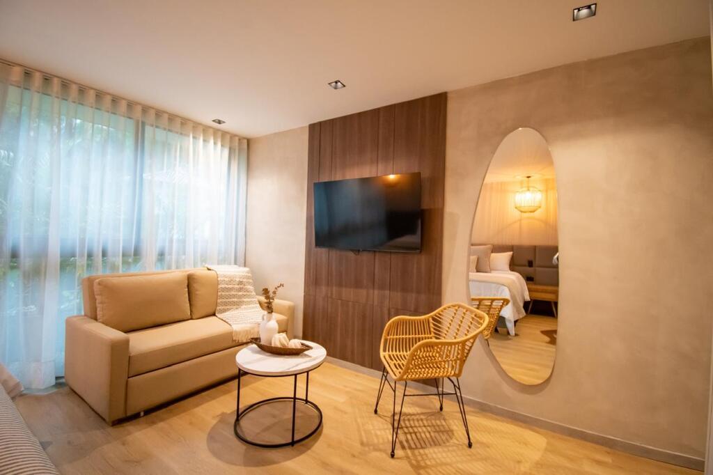 Our Deluxe Double Room offers 28 m² of modern, warm, and fully equipped space designed for your comfort, soundproofing, and a beautiful view of the interior garden. This room provides the perfect balance of elegance and well-being. Enjoy either a king-size bed or two single beds plus a 1.40 m sofa bed. The room features a private bathroom with double sinks, hot shower, vanity, and hairdryer. Premium amenities and 250-thread-count linens are included, along with satellite TV, refrigerator, wardrobe, desk, and safety deposit box.